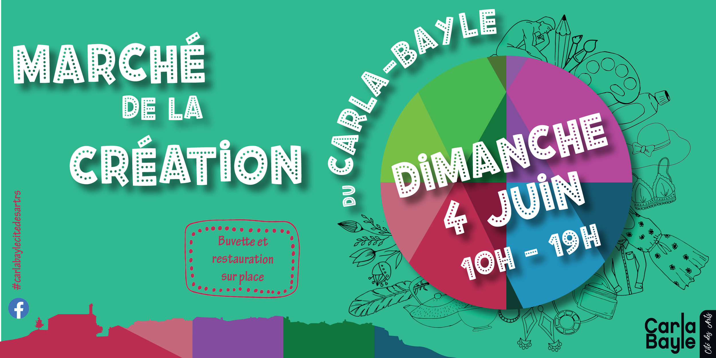 Le Marché de la création se déroulera le dimanche 4 juin 2023 de 10h à 19h sur la place de L’Europe et sur la place de l’école, au Carla Bayle.