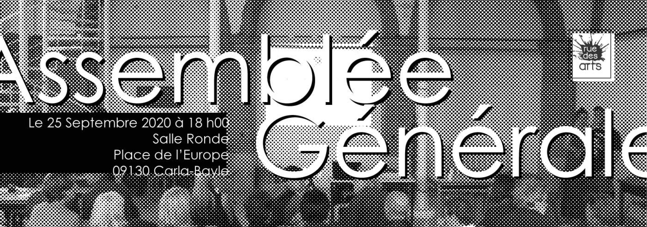 L'association Rue des Arts vous convie à l'Assemblée Générale annuelle qui aura lieu le : vendredi 25 septembre 2020 à 18 h à la Salle Ronde, Place de l'Europe au Carla-Bayle.