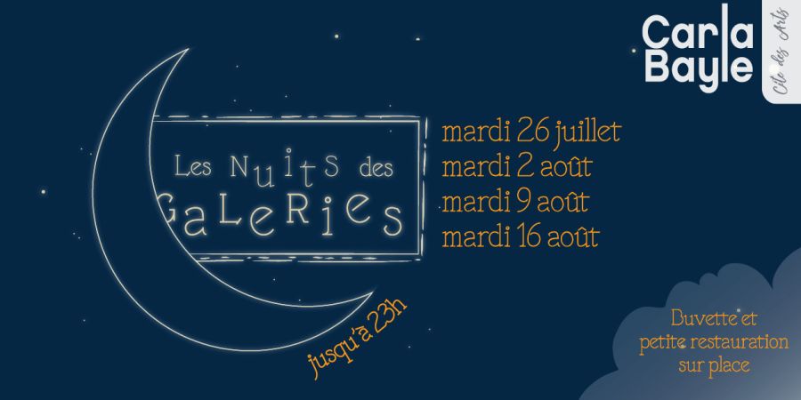 Lors des Nuits des Galeries, les artistes du village prolongent l'ouverture de leur atelier-galerie jusqu'à 23h. Chaque nocturne, des artistes et artisans sont invités...