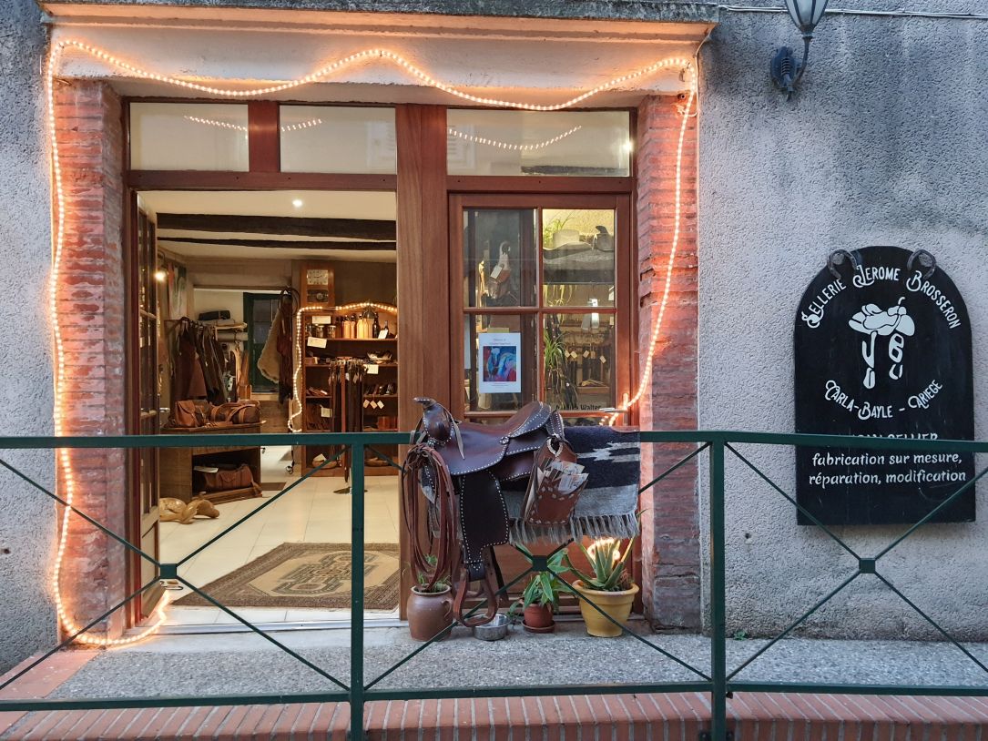 «Cavalier western depuis toujours, ancien guide de tourisme équestre en Polynésie, la conception et l’entretien de mon matériel m’ont toujours attiré. Je découvre la sellerie western professionnelle au cours d’un voyage en Australie en 1986. C’est avec Charles Leroy Dennis, sellier à Bishop, Californie, que je suis allé me former à la sellerie western en 1993. Après avoir obtenu une équivalence de maître sellier en Bavière, j’ai ouvert mon premier atelier à Munich en 1995. En 2000, ma famille et moi nous installons au Carla Bayle, en Ariège.»