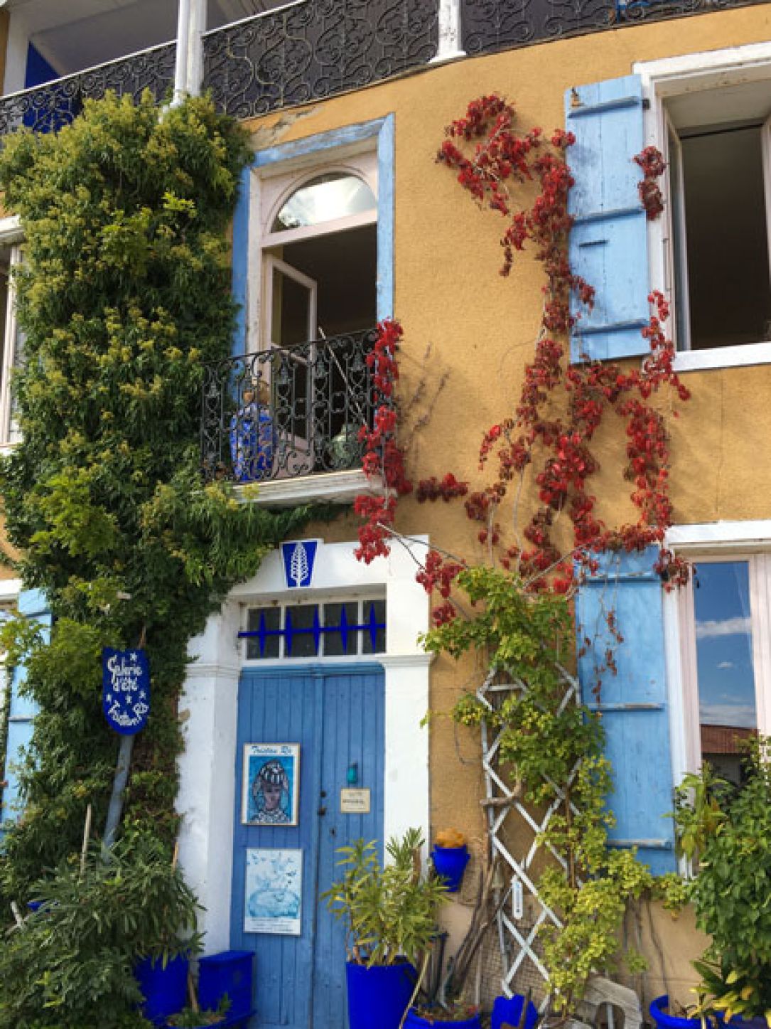 Le temps de la saison, il ouvre sa maison atypique aux volets bleus pour y accueillir les visiteurs.