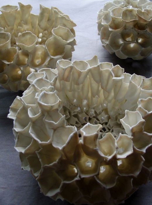 Les créations uniques de Manon Berthellot nous plongent dans un univers onirique imaginaire et sensible, où se mêlent inspiration des fonds marins, formes coralliennes et organiques, architectures des insectes bâtisseurs, corolles florales, mouvement des feuilles et monde cellulaire.