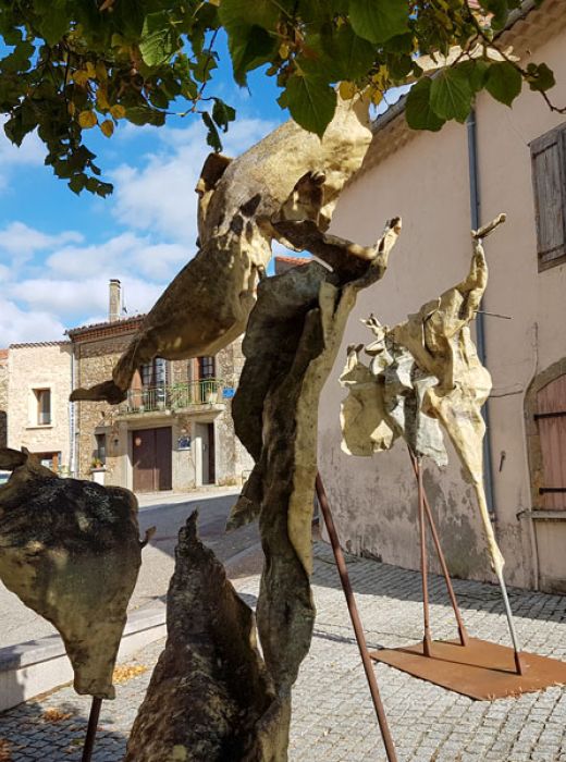 Il y créer "Jeux d'ombres", un superbe ensemble monumental 7x5m de huit éléments qui met en scène huit figures, ou plutôt ce que l'on dirait voir des êtres drapés dans leur propre peau.